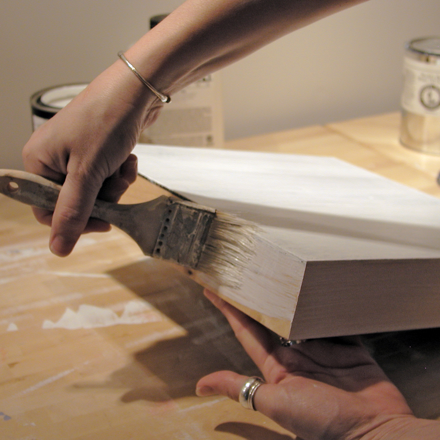 A: For painting on the raw wood cradle, first seal with either acrylic Gloss Medium + gesso or apply oil ground directly. Alternatively, brush on a thin coat of drying oil/solvent (1:1 linseed oil + OMS) or a thinned oil medium and let dry to the touch. Once sealed and dry, you’re ready to paint the sides with oils.