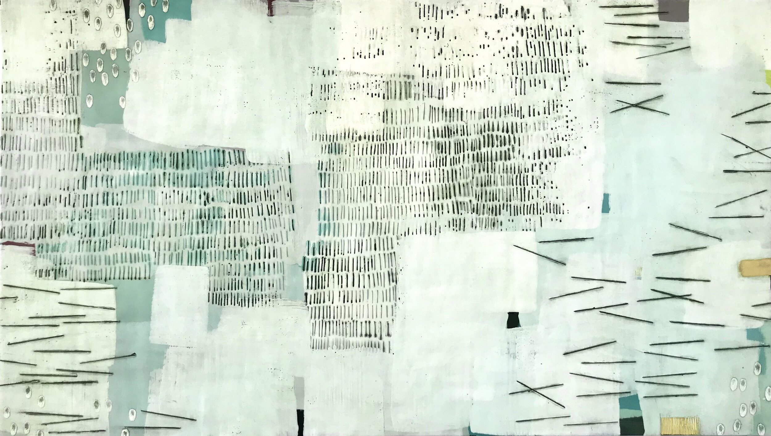 A: Definitely. I wasn't working with encaustic at that time. I was painting with acrylic and doing a lot of collage work that involved text. All of my work was representational. I began working at Maine College of Art in 2010, which exposed to me a wide, eclectic, and diverse range of art and artists. That's when I fell in love with abstraction. I actually feel like I stumbled backward into it because I actively disliked abstract work for a long time before that. It felt inaccessible. And then one day I saw a black and silver piece by an artist named Louise Philbrick. It was based on the Periodic Table of the Elements. I returned to look at it again and again for weeks. I obsessed over it because it made me feel something I hadn't really felt before. That's when I began to see differently and, eventually, work differently. It took me a while, but once I began working abstractly, I felt I was beginning to develop a language of my own.