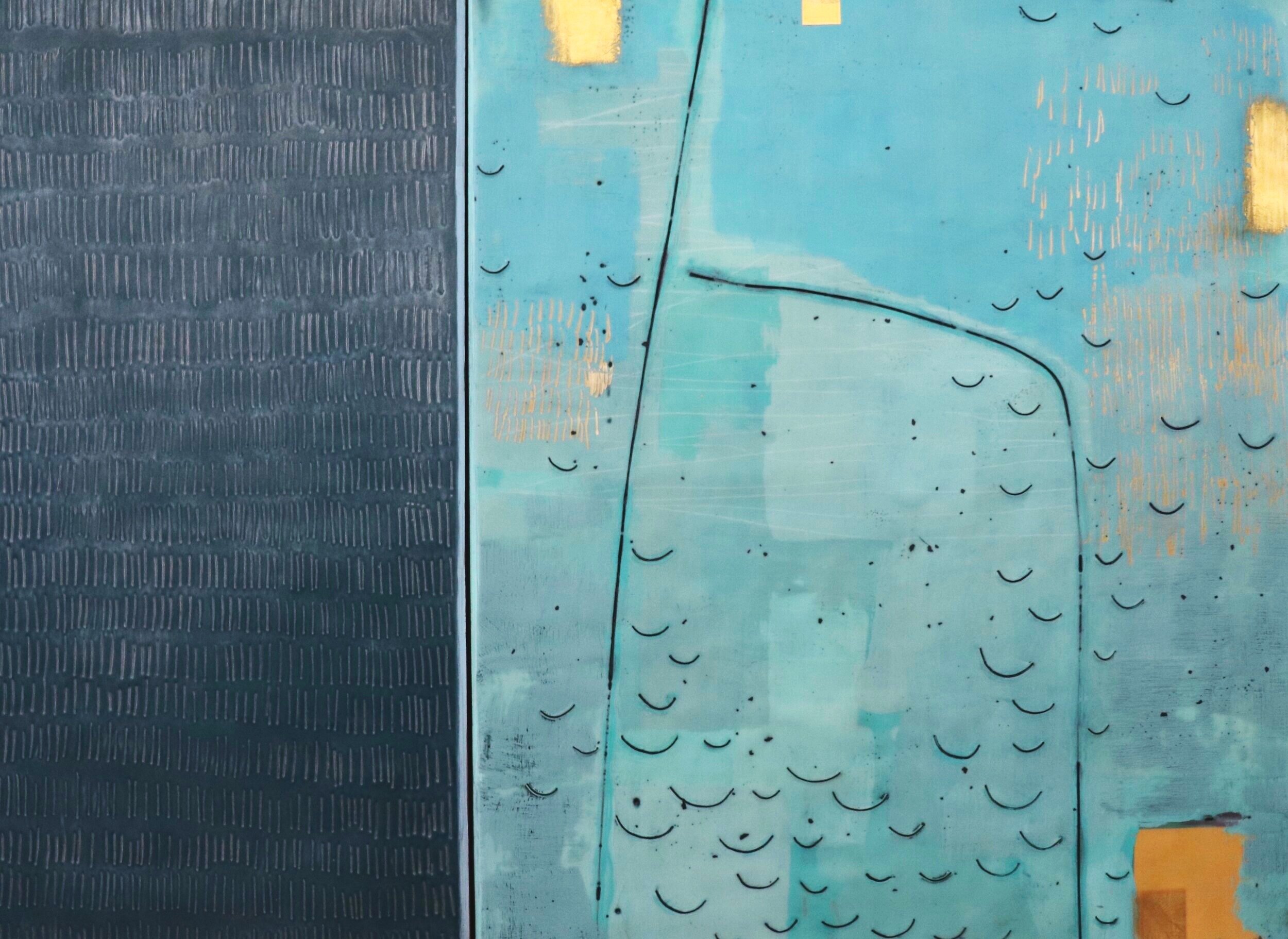 A: I don't know how my paintings are going to end. When I began working with encaustic, I definitely had a particular goal or vision in mind for each piece, but over time I let go of needing to know exactly where I was going with a particular painting. I might have a loose idea of what I want to do, but what I end up with is nearly always a surprise. It sounds funny to say, but each painting has its own unique personality. I have found that I do better if I stay engaged and present with what is happening and respond to that instead of trying to engineer an outcome.