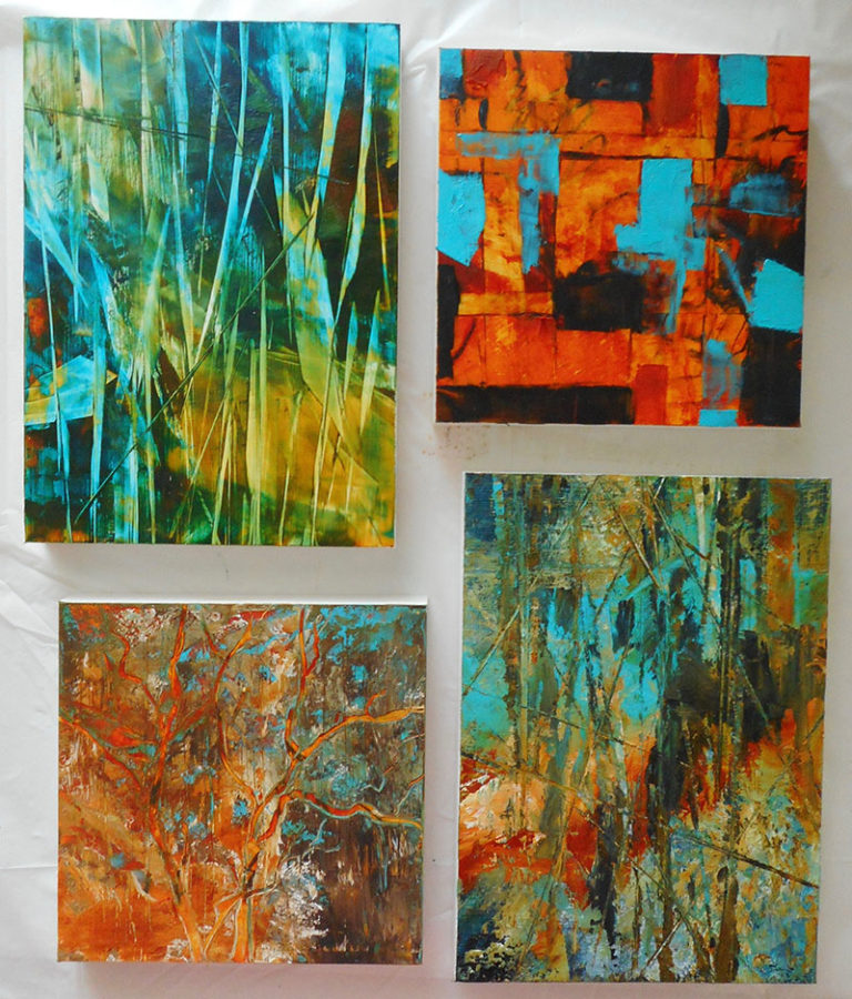 "I was excited about the medium, but oil paint was new. My take was that I’d better figure it out! My other concern was that my work to that point was always literal, never abstract." Once she started working in the media, she felt a meaningful connection to it. "Painting with oil and cold wax is tactile and luscious - the texture is almost silky. It dries quicker, and allows me to build layers and manipulate the paint." Doris describes her painting process as intuitive and fluid. "I start with color combinations that I like. From there, it’s a matter of layering and cutting back into the paint until a composition starts to appear. I ask myself will it continue? Often when I cut into the paint (with a palette knife) I can start to see the layers of color. Sometimes it’s a surprise what comes forward."