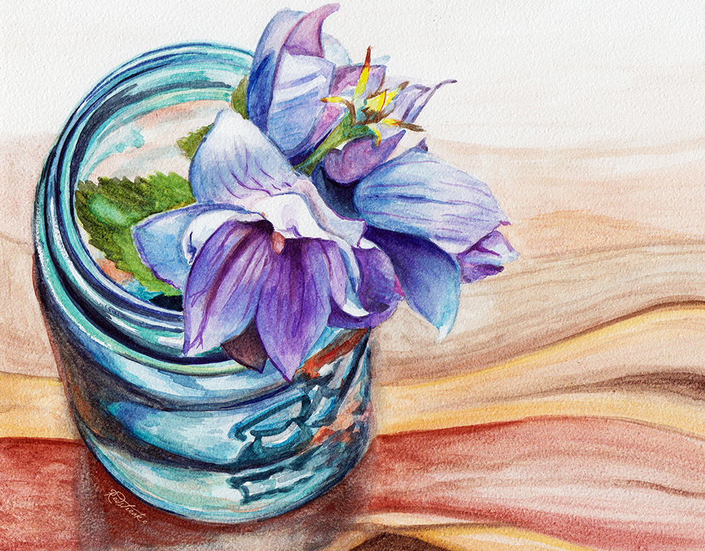 Ball Jar with Flowers, 8x10, watercolor on Ampersand Aquabord