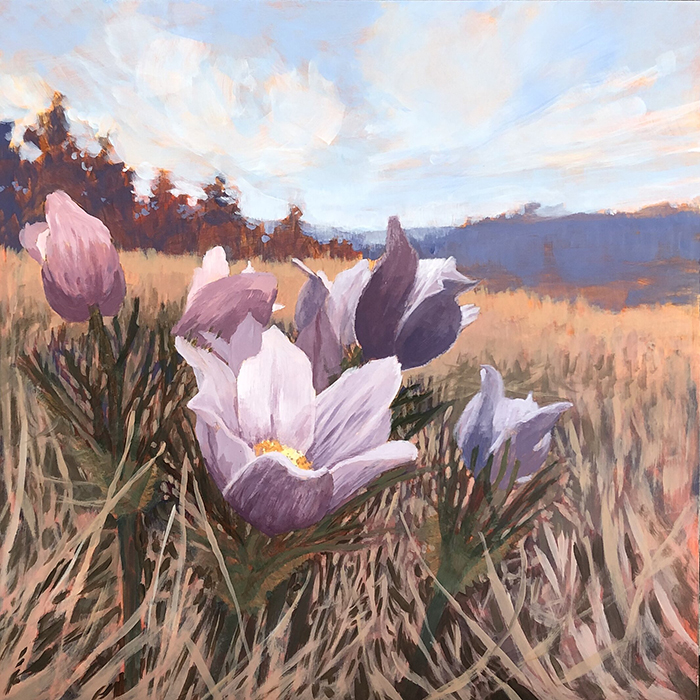 Prairie Crocus, 12x12, acrylic on Ampersand Claybord