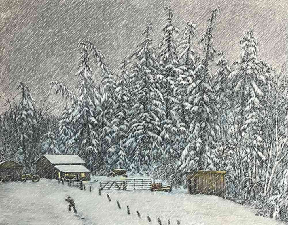 Joe Smith (b. 1954) is a Massachusetts artist who best known for his scratchboard works featuring trees and forests. His art connects his lifelong enjoyment of drawing with his career as a forester and conservationist. This career has brought him to places off the beaten path, and his art has allowed him to capture the beauty he has found there.