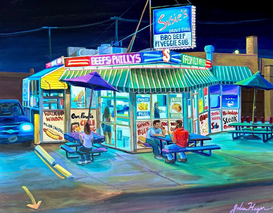 I feel like this path to the hot dog stand series makes so much sense now. I had been searching everywhere for what to become as a person, and as an artist, but it was right under my nose the whole time. I’m just a Chicago girl who needed to come home and dive into her love of this city to find it. To see more of Julia's work, visit her website, Instagram, Facebook, and TikTok.