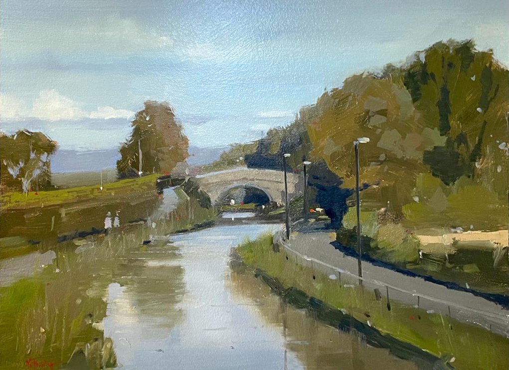 The Humpback Bridge at Lathom, 9x12, oil on Ampersand Gessobord