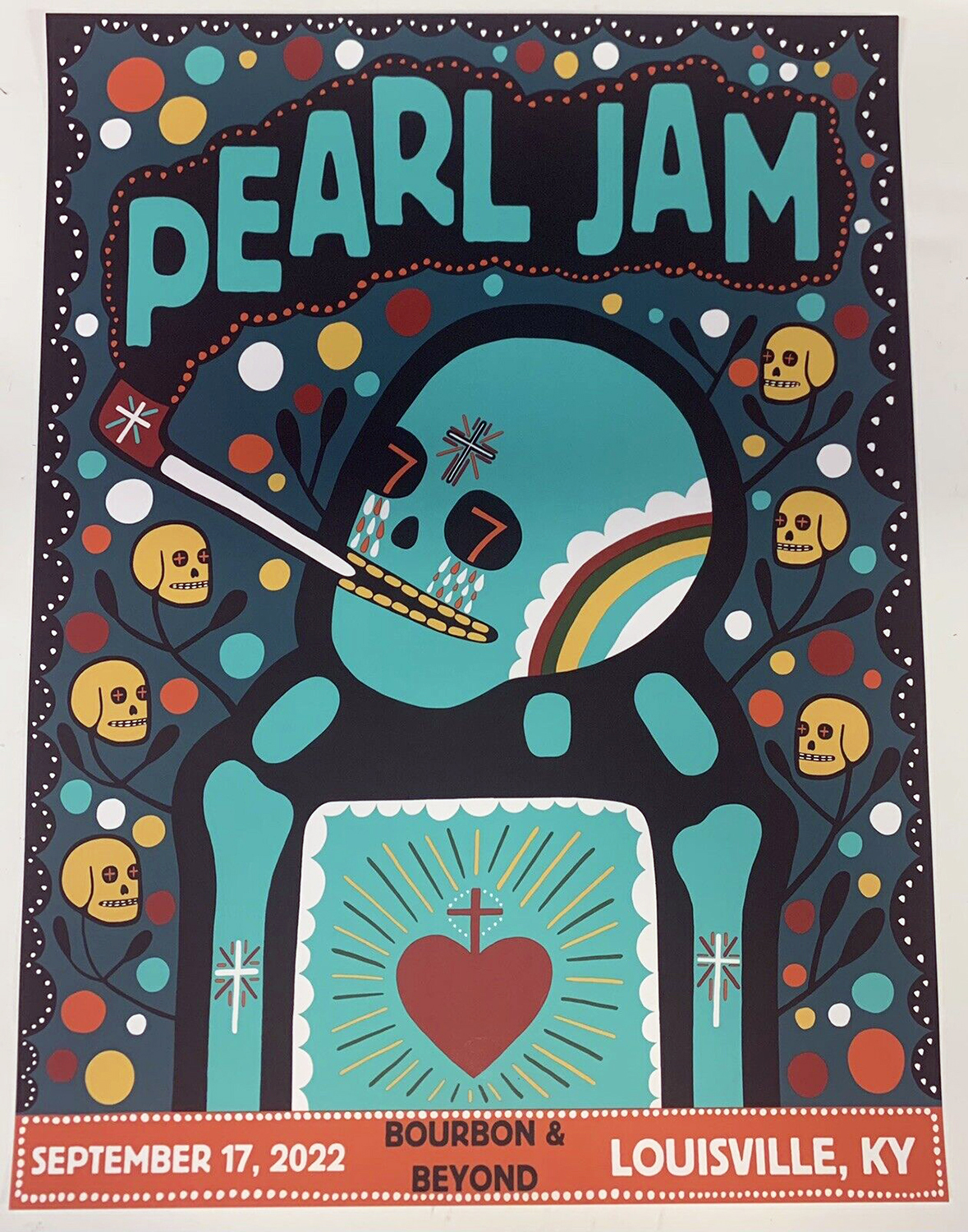 Their merch guys contacted me about doing the poster for the show. Pearl Jam does an artist-designed poster for every show they do, which is crazy. This was an added show to their tour schedule, and they needed another artist, so they reached out—a super fun project to be a part of.