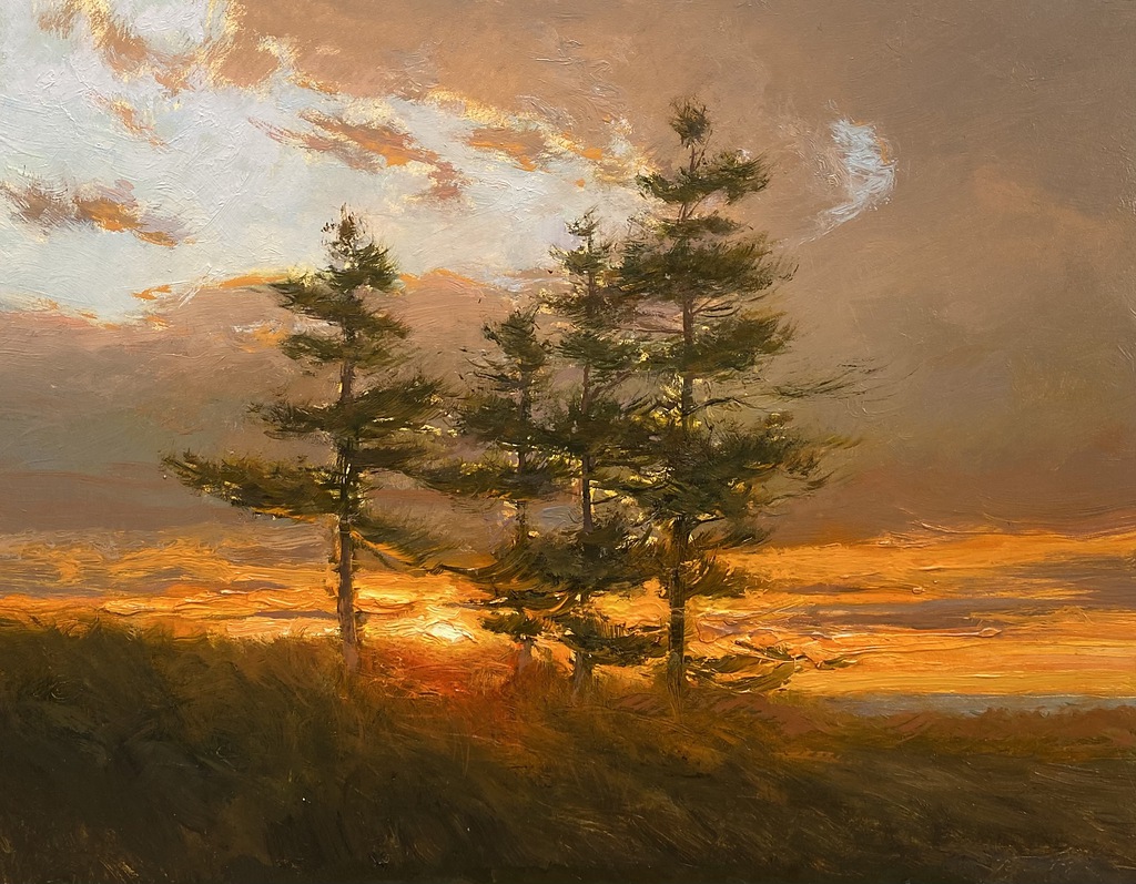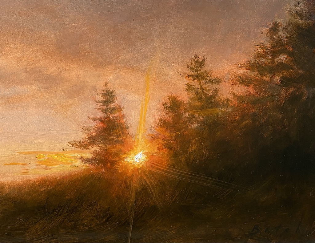 Shining Through the Pines, 11x14, oil on Ampersand Gessobord