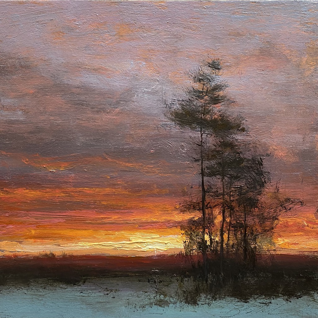 Winter Embers, 6x6, oil on Ampersand Gessobord