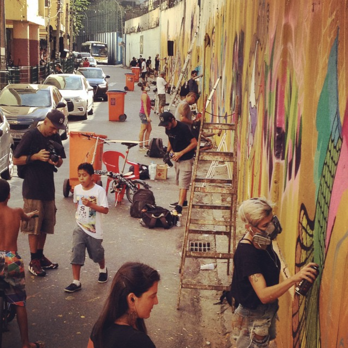 A: Traveling alone abroad has taught me more about myself and inspired major change in my lifestyle and how I communicate through art as an international language. Every place I travel to I enjoy learning about the people, culture, and history. Coming back from Brazil was one of the highest points in my life, meeting so many artists and being able to paint more in five months than I had in ten years. What people in the States forget is how important life can be when we work together for a common goal instead of thinking in survival mode. Painting in some of the most dangerous places in the world and giving back to communities that actually need art has been the most exciting and heartwarming gift I can give as an artist.