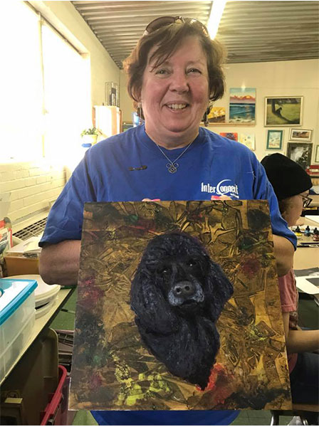 Suzanne Dunn-Housand has been taking classes with artist Micah Goguen since 2016. She decided after taking a "Depth and Texture" workshop with Micah that she would paint a tribute to a therapy dog raised and trained by her friend.