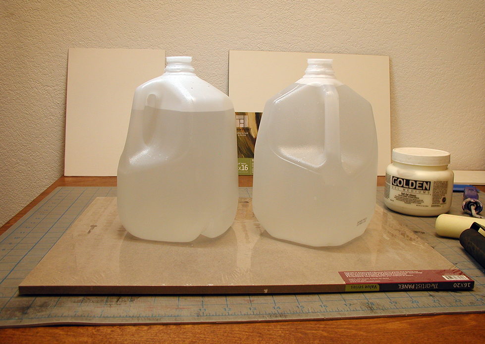 Step 2: To maximize adhesion, thin the Golden Soft Gel Medium with a little bit of water and apply it over the front of the panel (Lineco is not necessary).