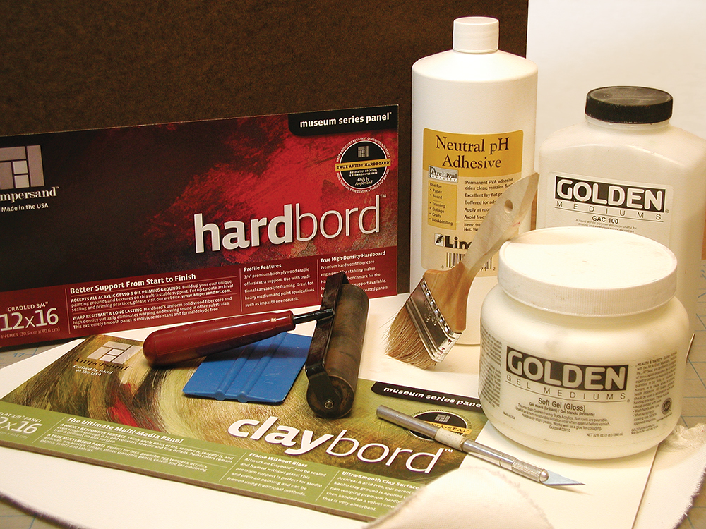 There are many ways to mount a flexible support to a panel. The materials suggested can be mixed and matched in order to suit your purposes. For example, you may substitute paper for the canvas or the Lineco adhesive for the Golden Soft Gel Medium. You will develop your own personal preferences.
