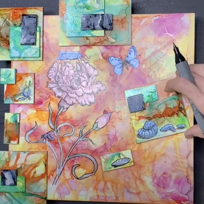 In this step-by-step guide by Celia Buchanan, explore Marabu Alcohol Inks and acrylic pouring medium on Ampersand's Claybord Art Tiles.