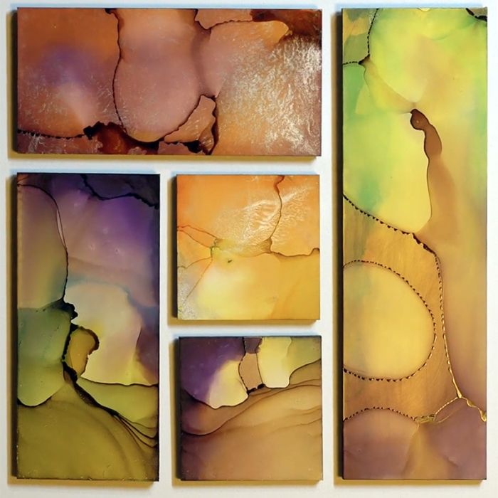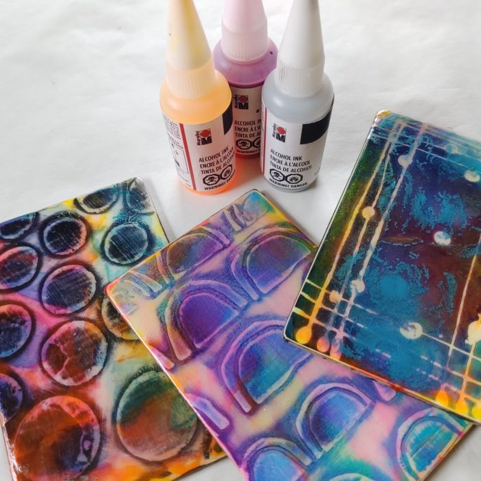 Fluid art with Claybord Art Tiles and Marabu Alcohol Inks